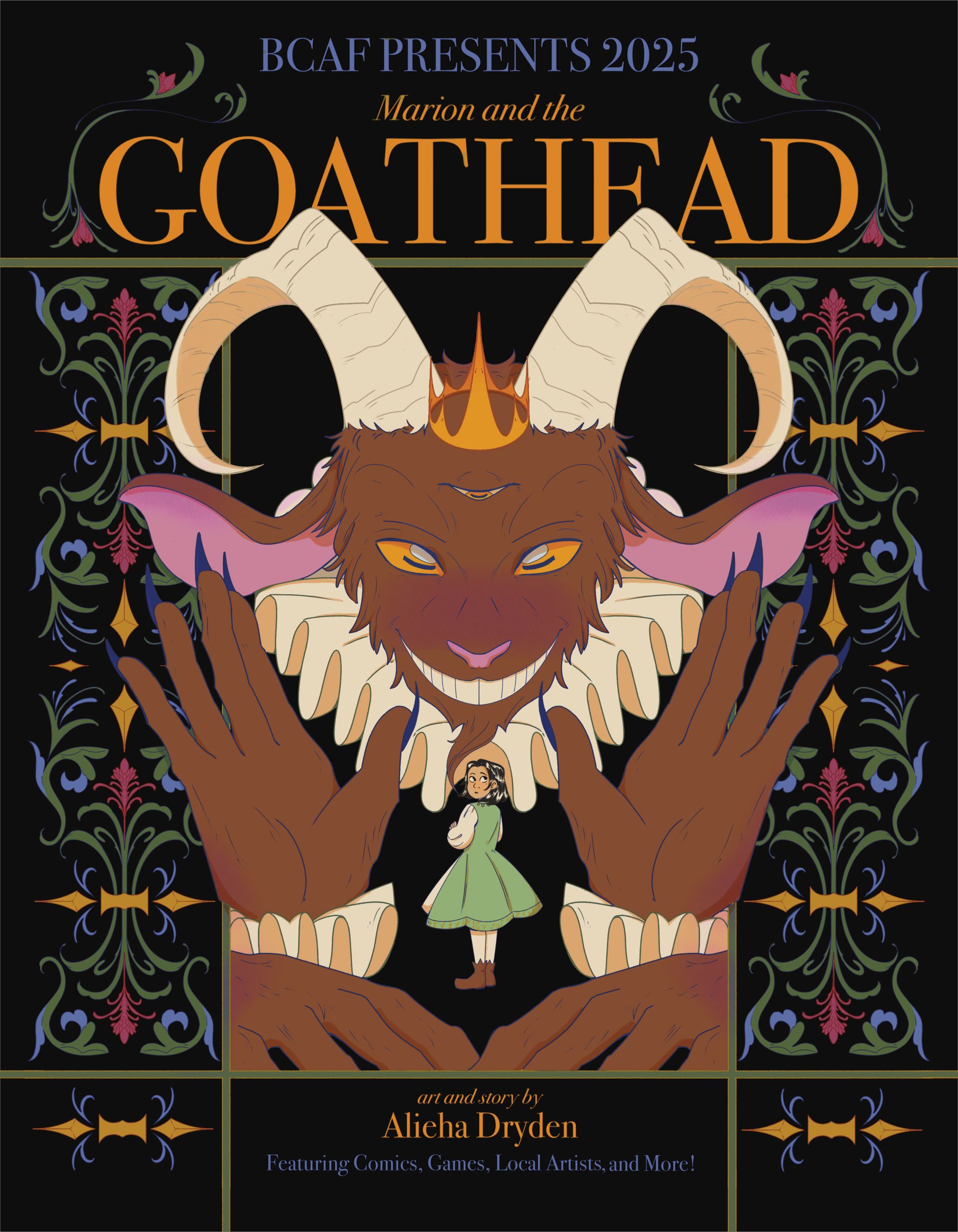 This year’s main comic was drawn by Alieha Dryden, who is an incredible local cartoonist! Her comic “Marion and the Goathead” is sure to delight readers both young and old looking for a fun and meaningful portal fantasy adventure.